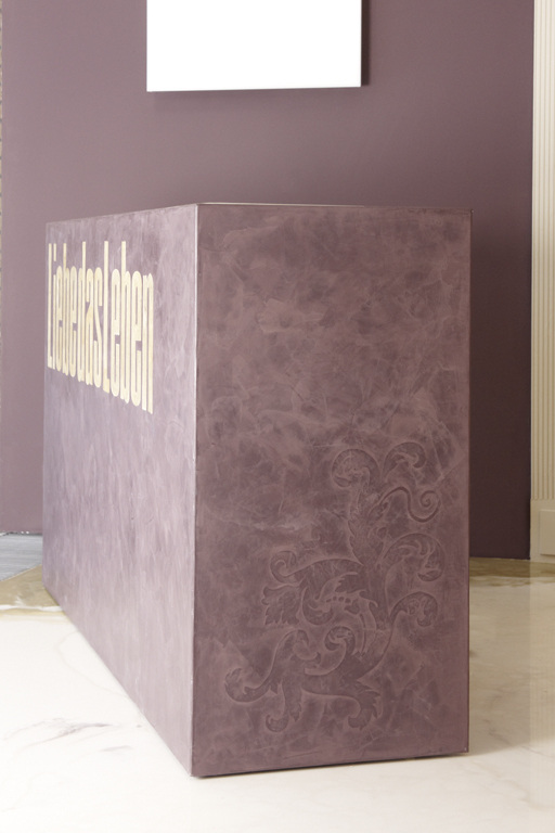 In Zusammenarbeit mit einem italienischen Künstler entstehen Unikate, die betreten werden dürfen. Ohne Verlege- oder Zuschnittarbeiten, ohne störende Nähte oder Fugen, in denen sich später Schmutz absetzen könnte, wird die Bodenbeschichtung vor Ort flüssig in sieben Schichten appliziert. Das Ergebnis sind kunstvolle Bodenbeläge, bei denen jeder ein Unikat ist. In punkto Alltagstauglichkeit und Langlebigkeit erfüllen die lichtechten und UV-beständigen, lösemittelfreien Gießharzböden alle üblichen Anforderungen. Sie eignen sich für Wohnräume, für Hotels, Ladengeschäfte oder Messestände. Auch eine Kombination mit Fußbodenheizung ist möglich.Nehmen Sie hier Kontakt über folgende Adresse auf: fmk@kliebensteininterieur.de